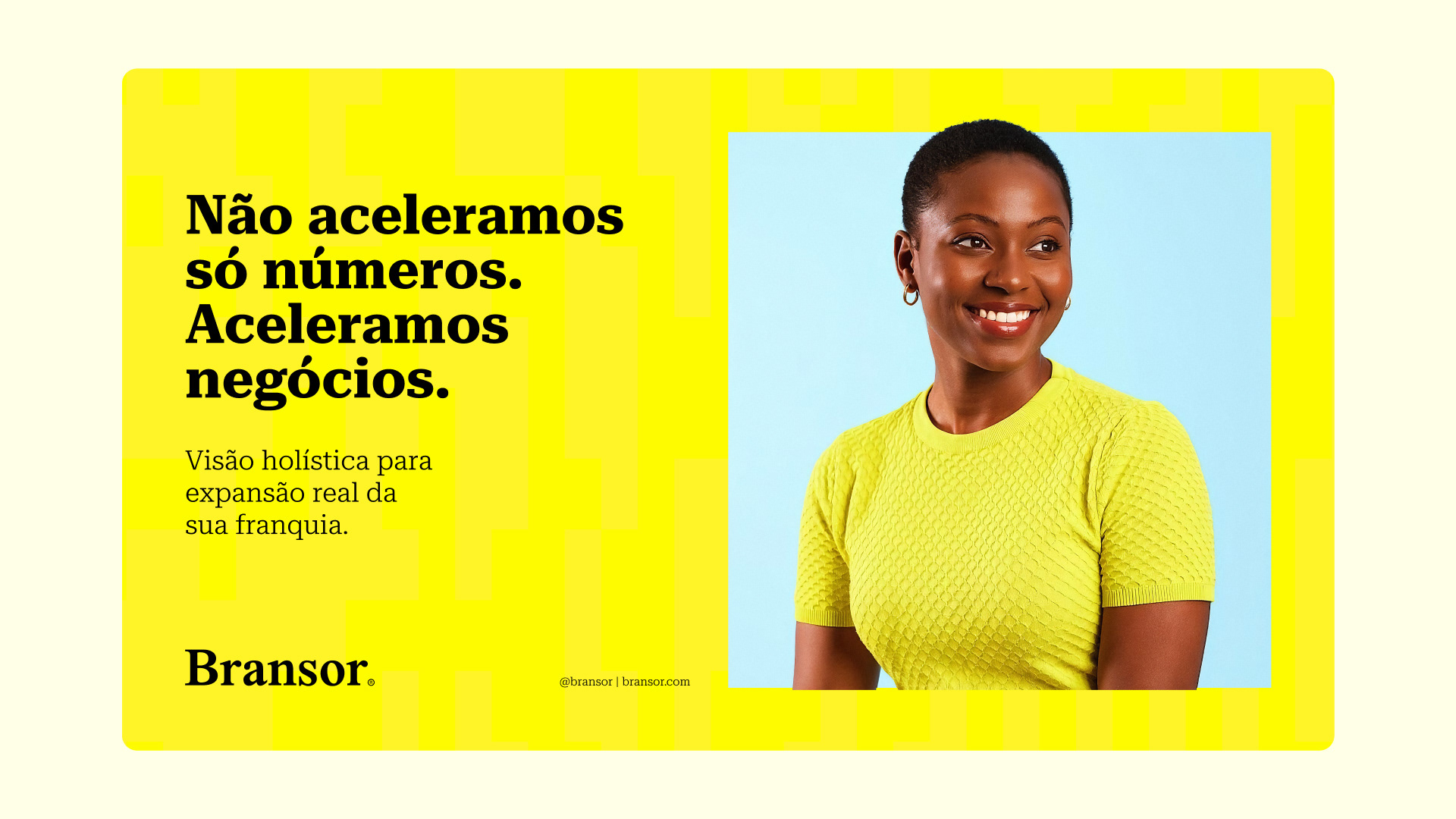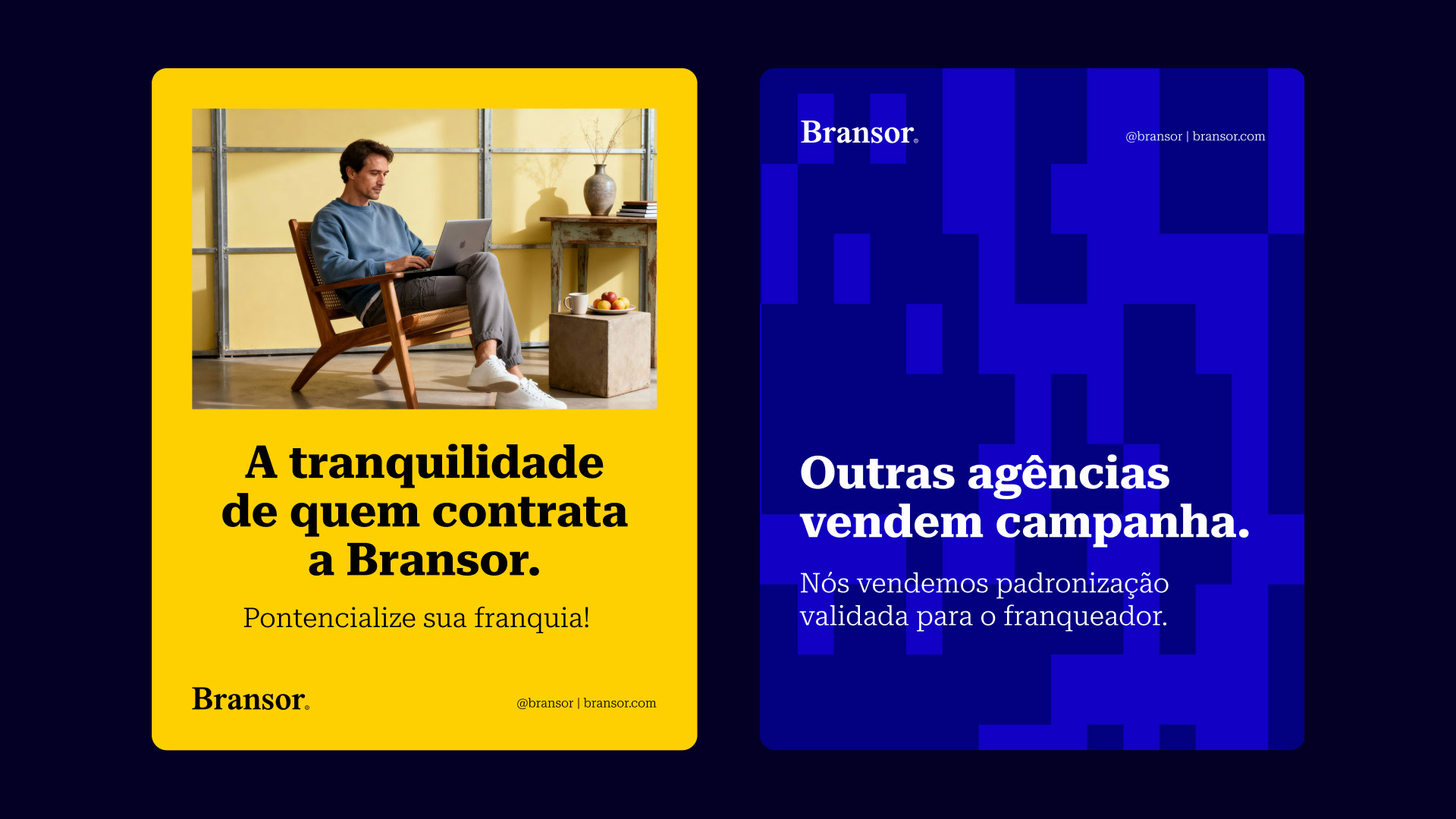 Para uma marca que promete estrutura, a comunicação não pode ser frívola. O tom de voz da Bransor equilibra o peso da autoridade com o frescor da inovação. A tagline "Conectando hoje ao EXTRAORDINÁRIO" funciona como um portal temporal: pega o franqueado onde ele está (o "hoje" real e urgente) e o transporta para onde ele quer estar (o futuro excepcional).
